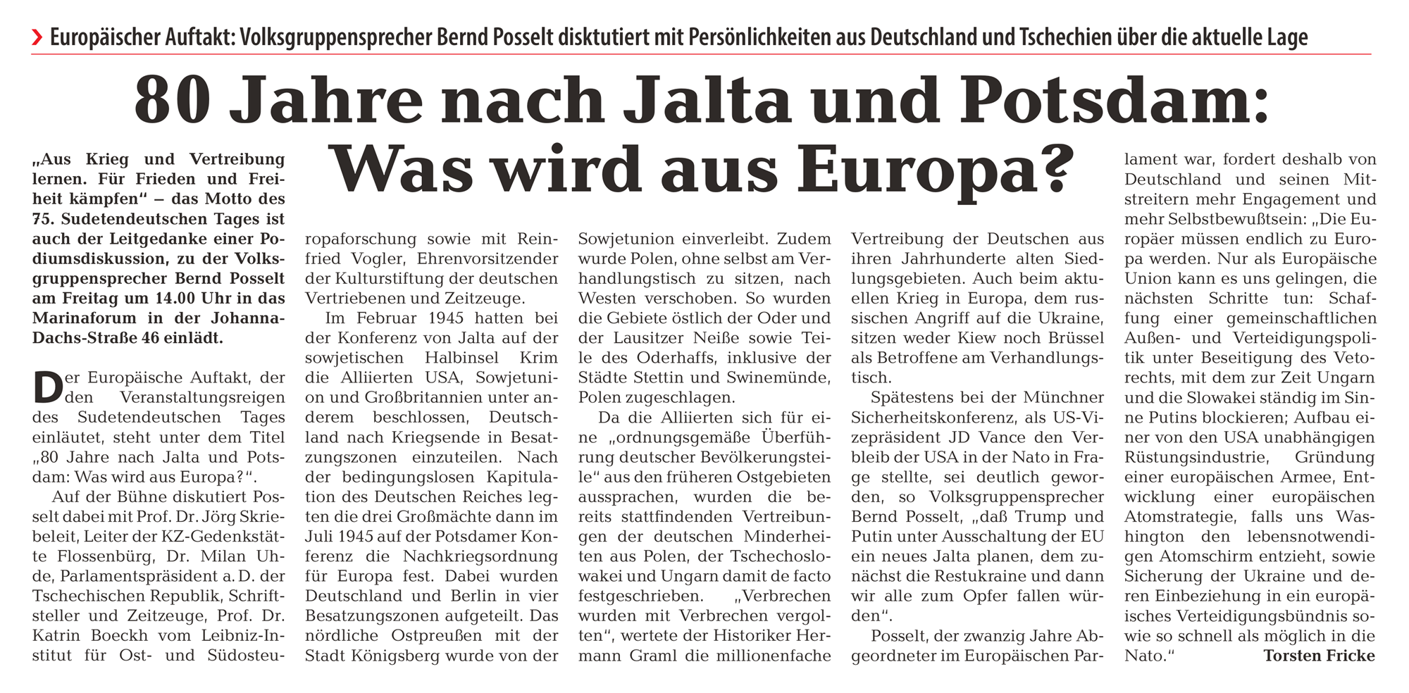 Sudetendeutsche Zeitung, Folge 22/2025 vom 30. Mai 2025, S. 7.