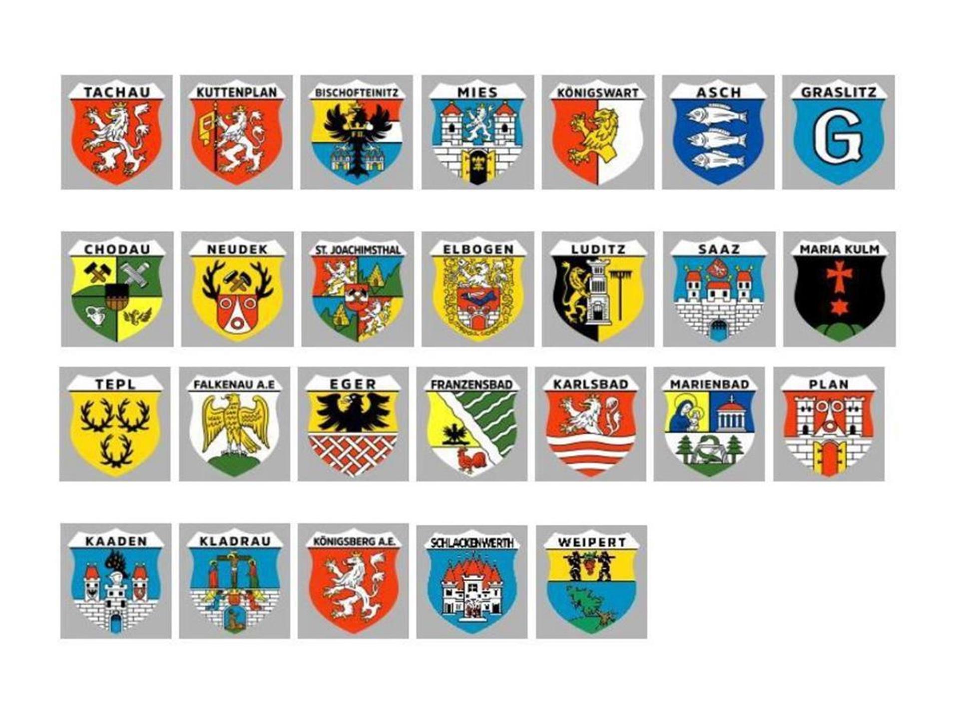 Asch, Bischofteinitz, Chodau, Eger, Elbogen, Falkenau, Franzensbad, Graslitz, Kaaden, Karlsbad, Kladrau, Königsberg, Königswart, Kuttenplan, Luditz, Maria Kulm, Marienbad, Mies, Neudek, Plan, Saaz, Schlackenwerth, St. Joachimstal, Tachau, Tepl, Weipert und der Egerland-Jugend.
