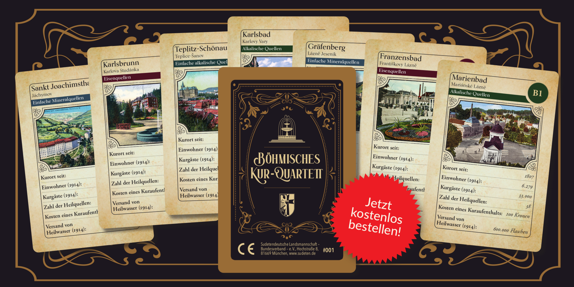 Die Sudetendeutsche Landsmannschaft hat ein neues Kartenspiel herausgegeben. Auf 48 Karten werden darin bekannte und weniger bekannte Kurorte der Böhmischen Länder vorgestellt. Das Spiel kann kostenlos bei der Bundesgeschäftsstelle der Landsmannschaft bezogen werden.